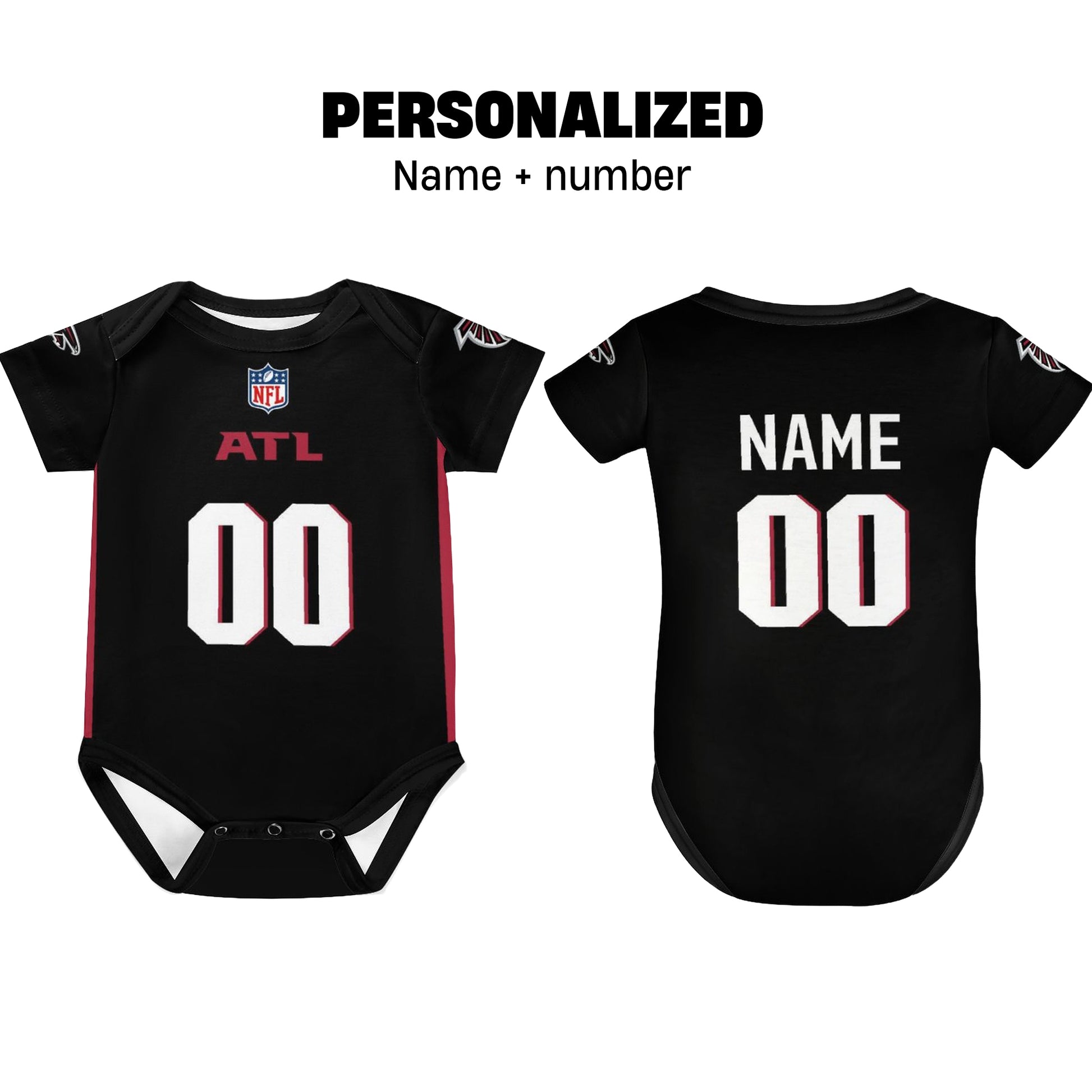 Add a personal touch by customizing the onesie with your babyโs name or favorite number! Select the personalization option, and weโll create a unique keepsake for your little Falcons supporter.